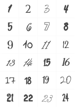 Nutze die Vorlagen mit Adventskalenderzahlen zum Ausdrucken für deinen eigenen Adventskalender. Jede Vorlage lässt sich direkt im